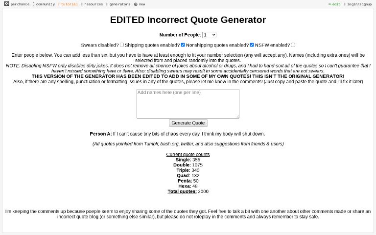 Incorrectquotesmaker 3322 vines generator incorrectquotes. If you have a side character you want to add there may be prompts that include 3-4 people. To avoid any future confusion we would like to point out that the current design of this website and the prompts here are just placeholders that will eventually be replaced in the future updates.